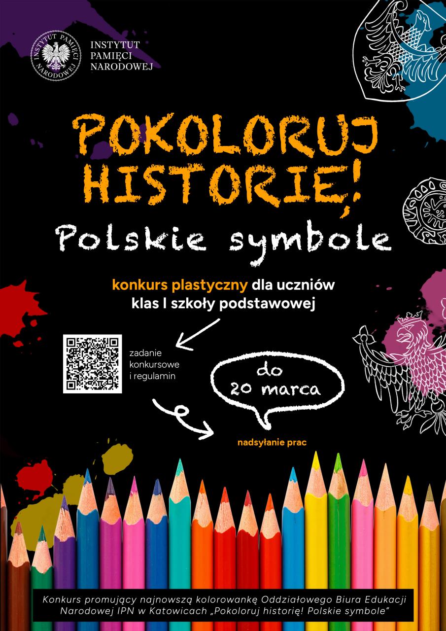 Zapraszamy uczniów klas I szkół podstawowych do wzięcia udziału w konkursie organizowanym przez Oddziałowe Biuro Edukacji Narodowej Instytutu Pamięci Narodowej w Katowicach. Celem konkursu jest promowanie postaw patriotycznych oraz wiedzy o polskich symbolach narodowych. Organizacja konkursu związana jest z promocją najnowszej kolorowanki edukacyjnej dla dzieci, przygotowanej przez Oddziałowe Biuro Edukacji Narodowej IPN w Katowicach „Pokoloruj historię! Polskie symbole”.