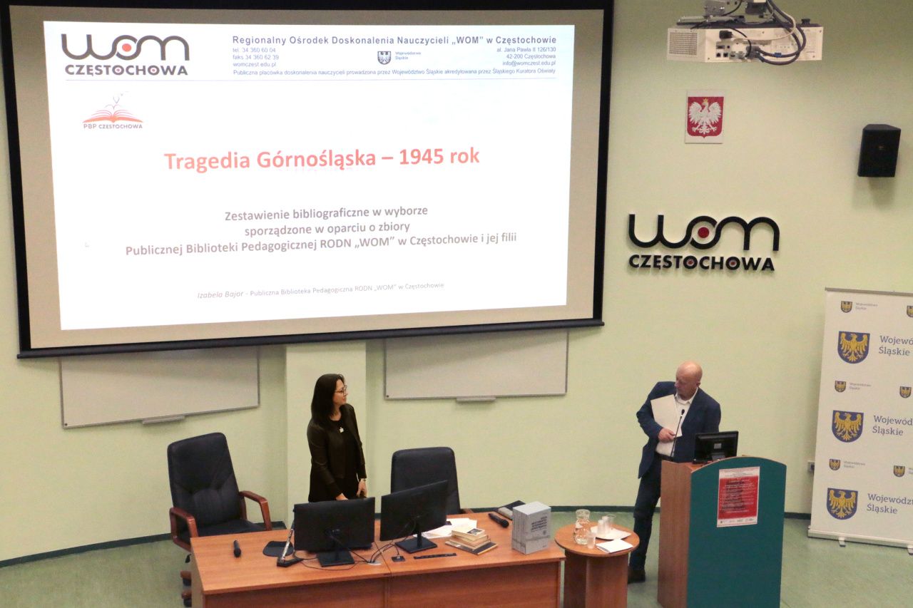 „Deportacje Górnoślązaków do ZSRS w 1945 roku na tle deportacji z innych rejonów Polski i innych części Europy Środkowo-Wschodniej” przybliżył Bartłomiej Warzecha, OBEN IPN Katowice. Następnie Aleksandra Korol-Chudy, OBEN IPN Katowice omówiła wystawę elementarną IPN pt. „Tragedia Górnośląska 1945”. Zestawienie bibliograficzne w wyborze sporządzone w oparciu o zbiory Publicznej Biblioteki Pedagogicznej RODN „WOM” w Częstochowie i jej filii zaprezentowała Izabela Bajor, PBP RODN „WOM” w Częstochowie. Konferencję zakończyła burzliwa dyskusja, a całość podsumował dr Sławomir Maślikowski, RODN „WOM” w Częstochowie.