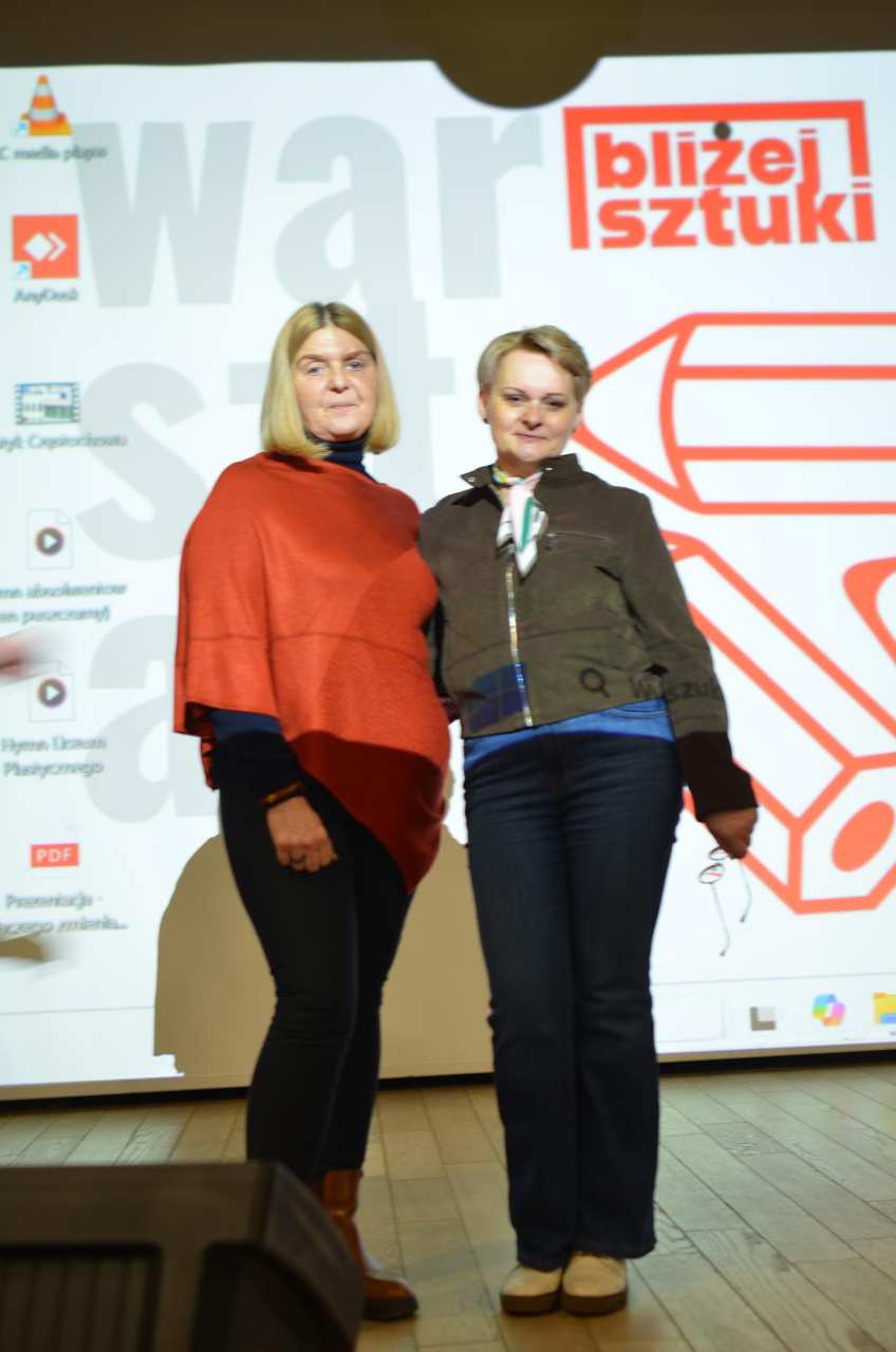 W tym samym czasie nauczyciele wysłuchali wykładu prowadzonego przez panią Sylwię Kurcab, nauczyciela-konsultanta RODN „WOM” w Częstochowie. Prelekcja dotyczyła projektu nowej podstawy programowej z plastyki oraz najważniejszych zmian w realizacji zajęć przedmiotowych.