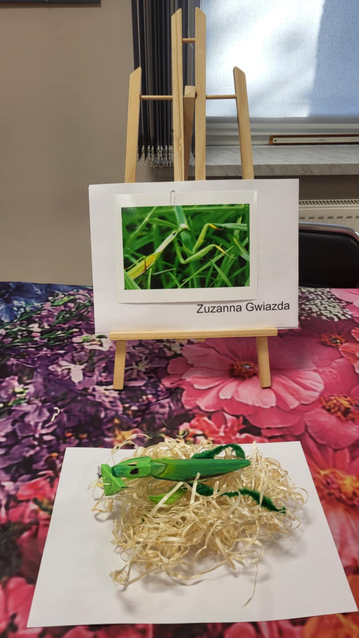 - wykonanie trójwymiarowego modelu wybranego owada na podstawie zdjęcia z prezentacji. Makiety mogły zawierać ruchome elementy i mieścić się w sześcianie o boku 20 cm.