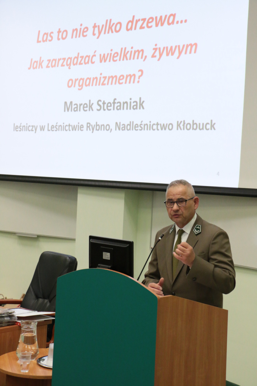 Program spotkania został zaplanowany tak, aby nie tylko nagrodzić zwycięzców, ale przede wszystkim, dzięki zaproszonym ekspertom, rozbudzić w słuchaczach ciekawość świata. Pan Marek Stefaniak, leśniczy z Leśnictwa Rybno w Nadleśnictwie Kłobuck w niezwykle barwny sposób opowiedział o tym, jak zarządzać leśną wspólnotą. W swojej prelekcji pt. „Las to nie tylko drzewa… Jak zarządzać wielkim, żywym organizmem?” rzucił nowe światło na pracę leśnika. Słuchacze mogli dowiedzieć się, że las to skomplikowana machina powiązań, w której każdy element – od maleńkiego owada po potężny dąb – pełni kluczową rolę, a zarządzanie tym zasobem wymaga nie tylko wiedzy technicznej, ale i wielkiej pokory. Dzięki niemu słuchacze zrozumieli, że praca leśnika to nieustanny dialog z naturą, ale też z innymi ludźmi.